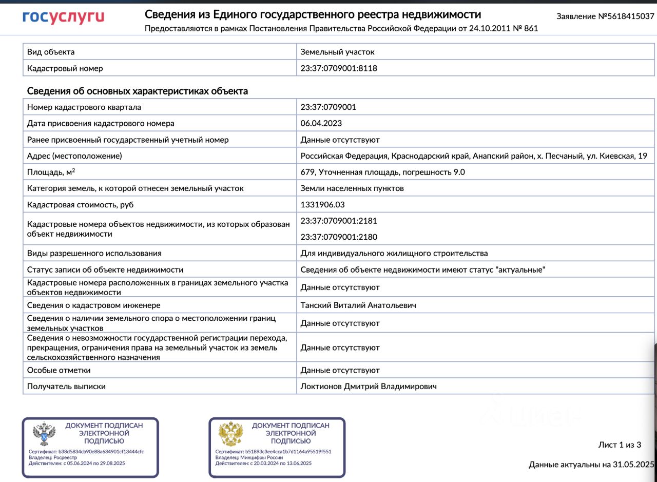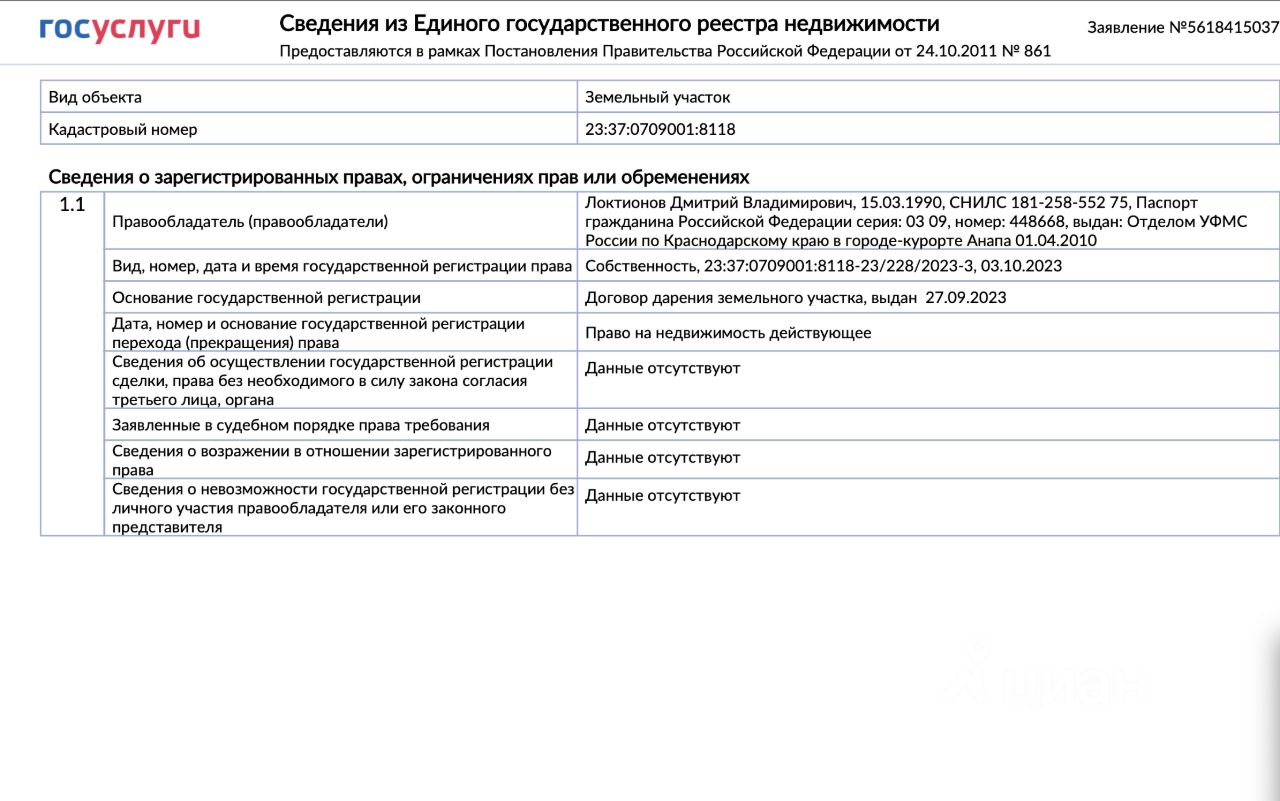 Кадастровый номер: 23:37:0709001:8118