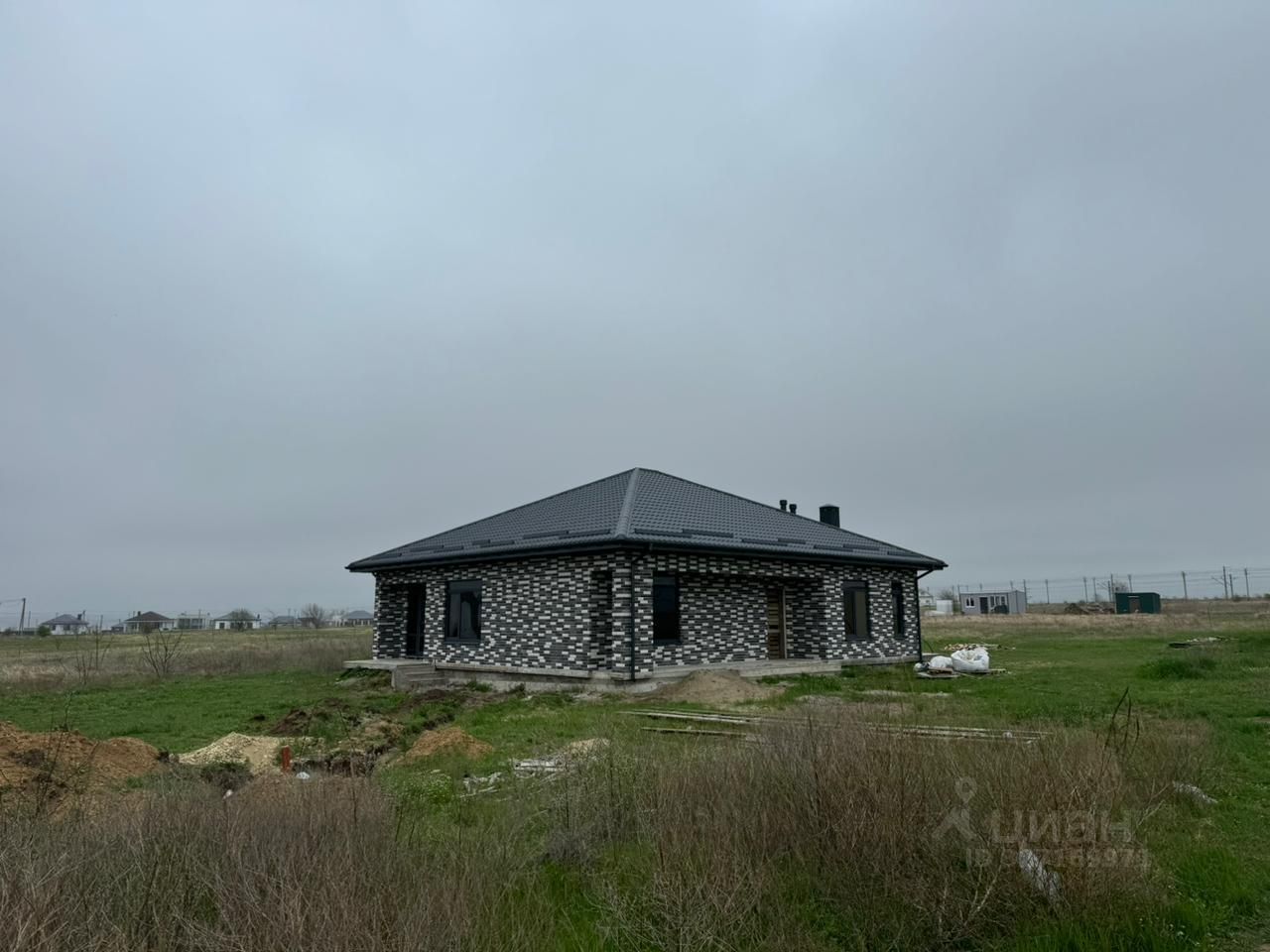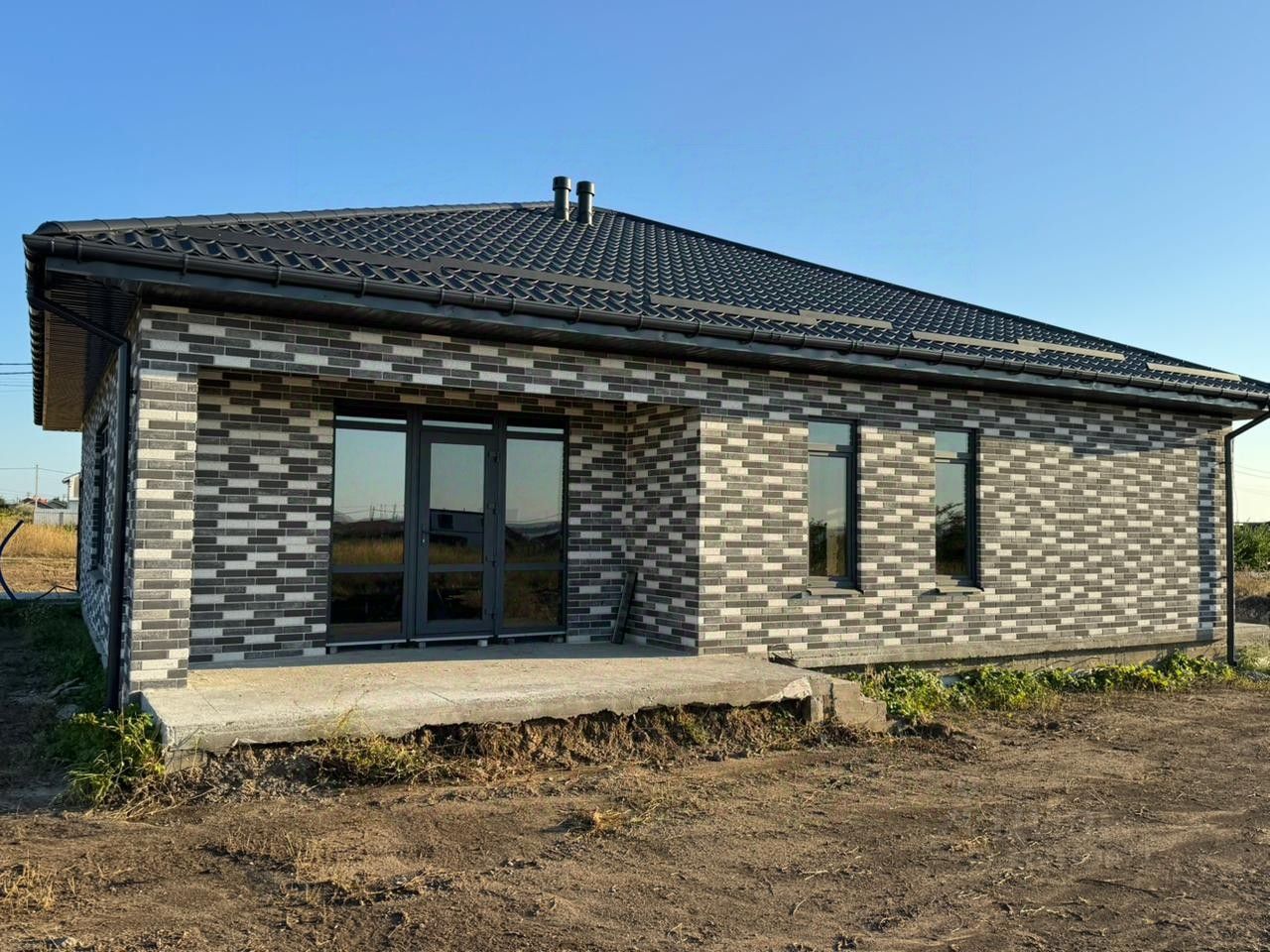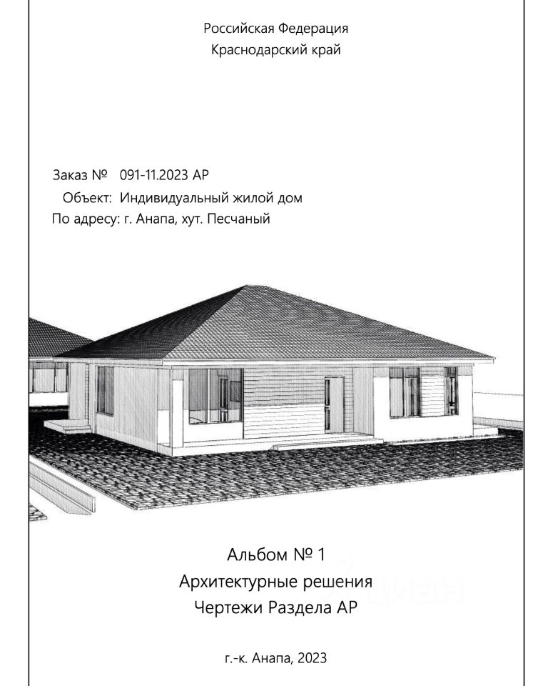 Участок в собственности, границы установлены, документы готовы к сделке. До моря 15-20 мин на машине. На участке построен одноэтажный дом 150 м2. Есть архитектурный проект дома. Планировка: 3 спальни, просторная кухня-гостиная (около 37 м²), 2 санузла, гардеробные, холл, террас.