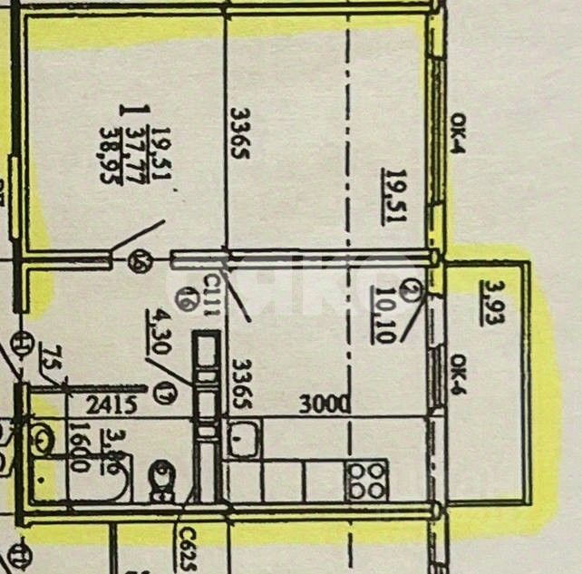 Общая площадь квартиры 38кв.м Комната-19.5кв.м Кухня-11кв.м Прихожая-4.70кв.м Сан.узел-3.83кв.м