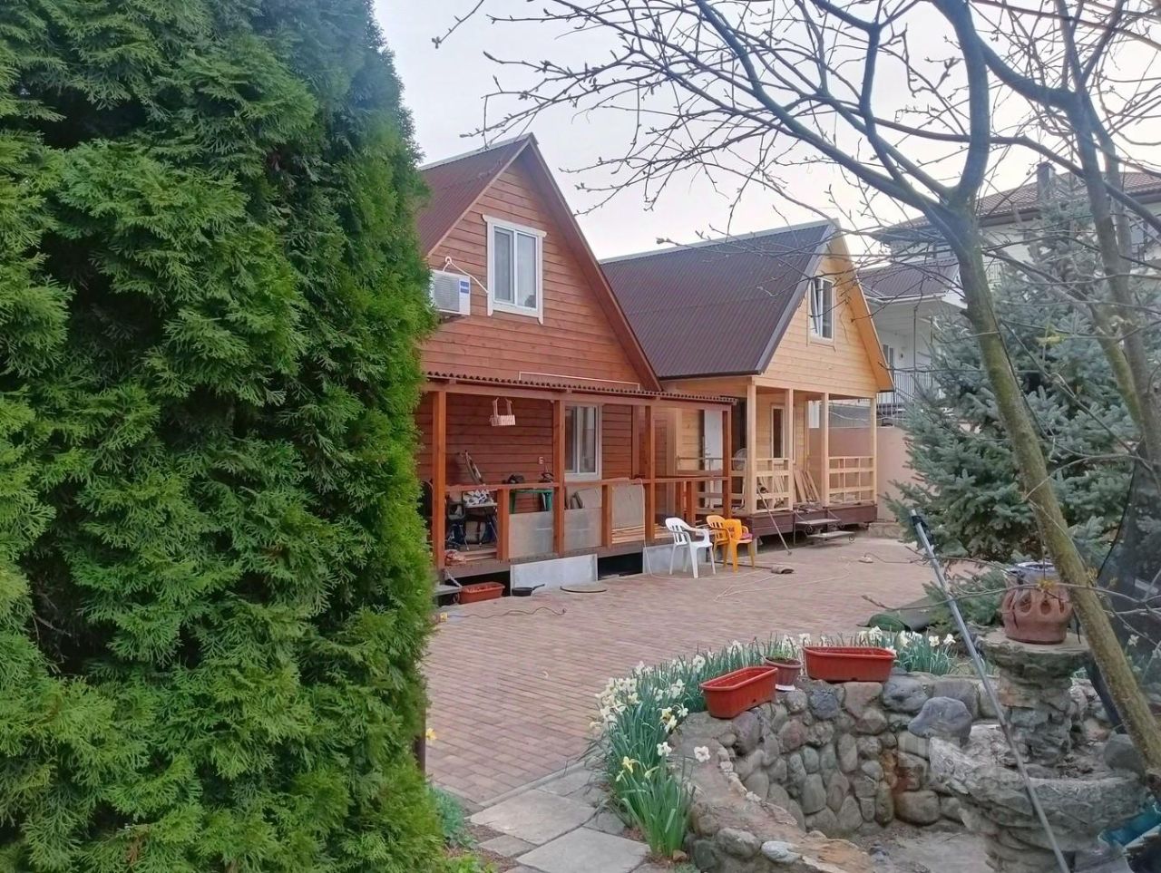 На территории большого участка, общей площадью 10 соток, расположились несколько двухэтажных домов с просторными гостиничными номерами для туристов: - есть две 2-комнатные полноценные квартиры с отдельным входом (теплые полы) - 14 апартаментов для сдачи. Также на территории есть большая и уютная беседка с зоной барбекю, два деревянных шале, готовится площадка под бассейн, парковка для гостей. Все коммуникации ЦЕНТРАЛЬНЫЕ. На первых этажах - теплый пол.