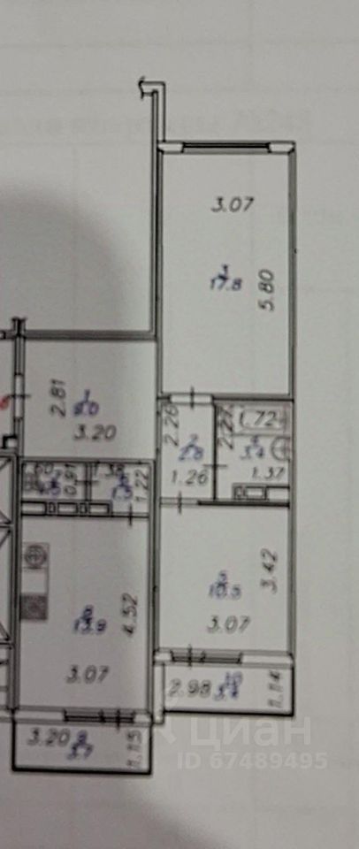Удобная конфигурация квартиры распашонка с кухней гостиной 13,9 кв.м., изолированные комнаты 10,5 и 17,8 кв.м., два застекленных просторных балкона с теплым полом.