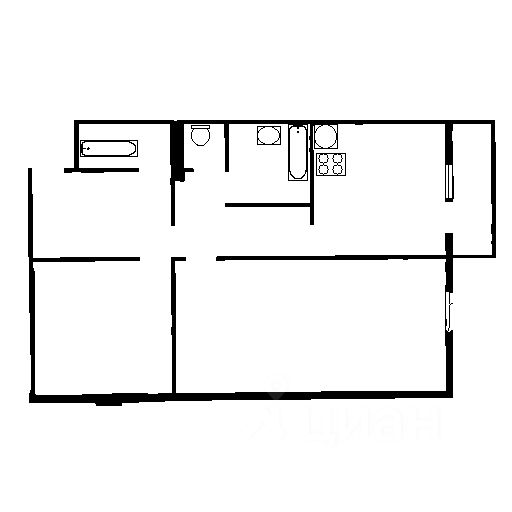 Удобная конфигурация квартиры распашонка с кухней гостиной, изолированные комнаты, застекленный просторный балкон из кухни.