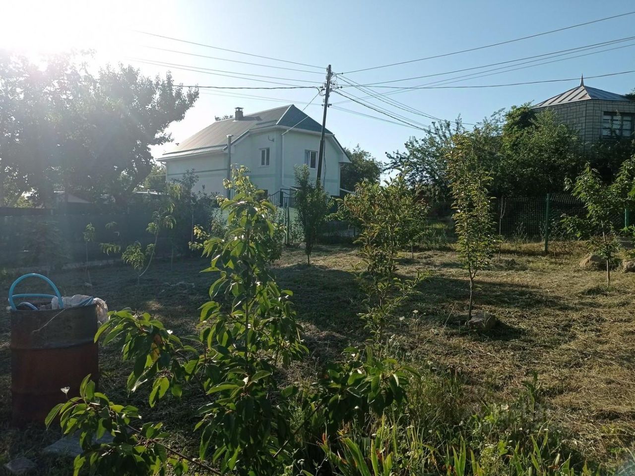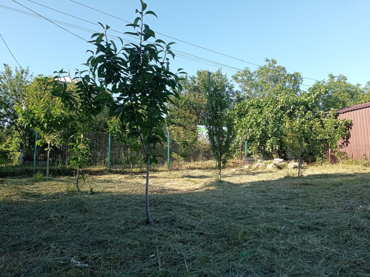 В молодом саду фруктовые деревья уже плодоносят. Земля хорошая ,чернозём, выращивала на участке арбузы и дыни.