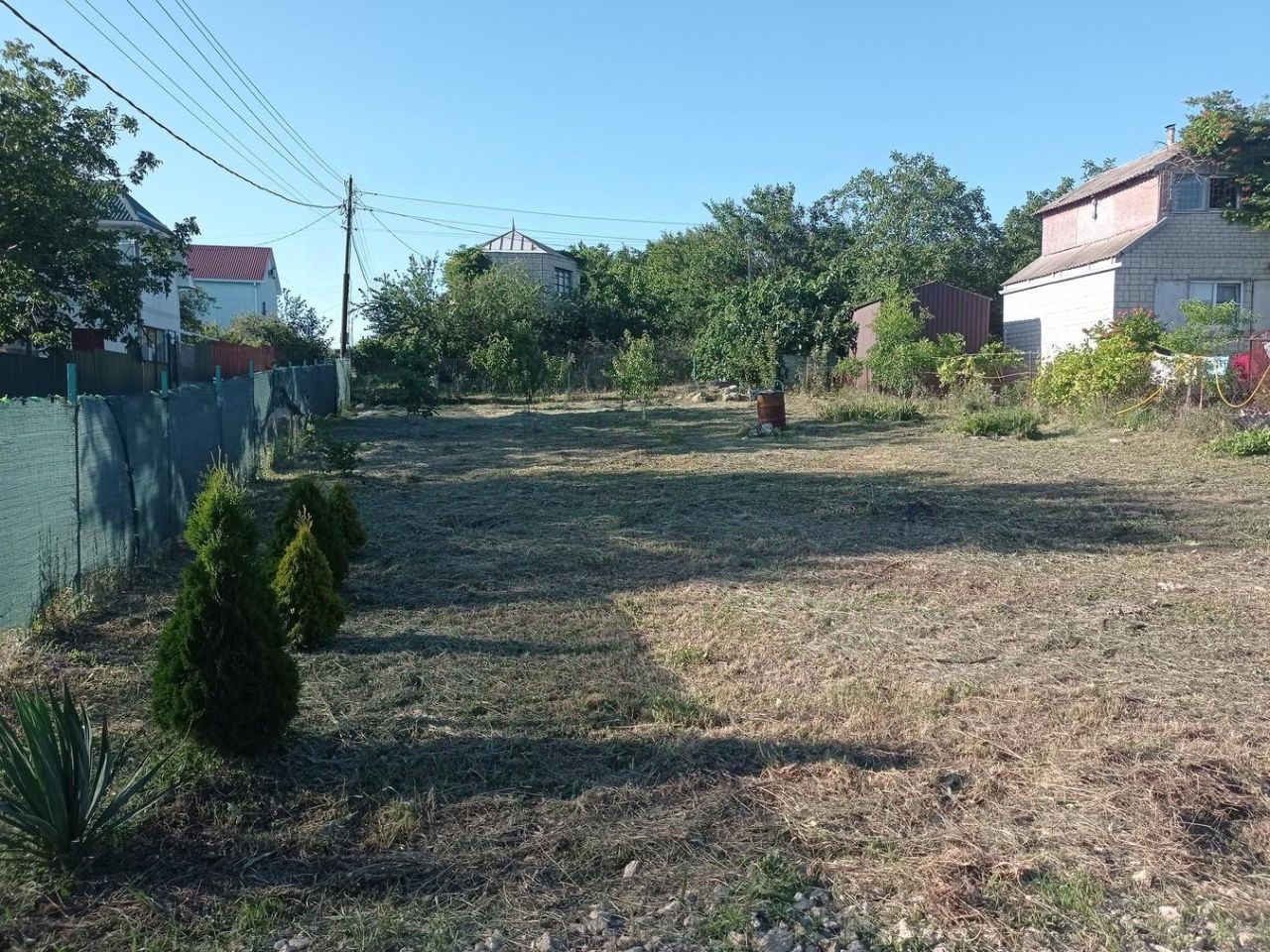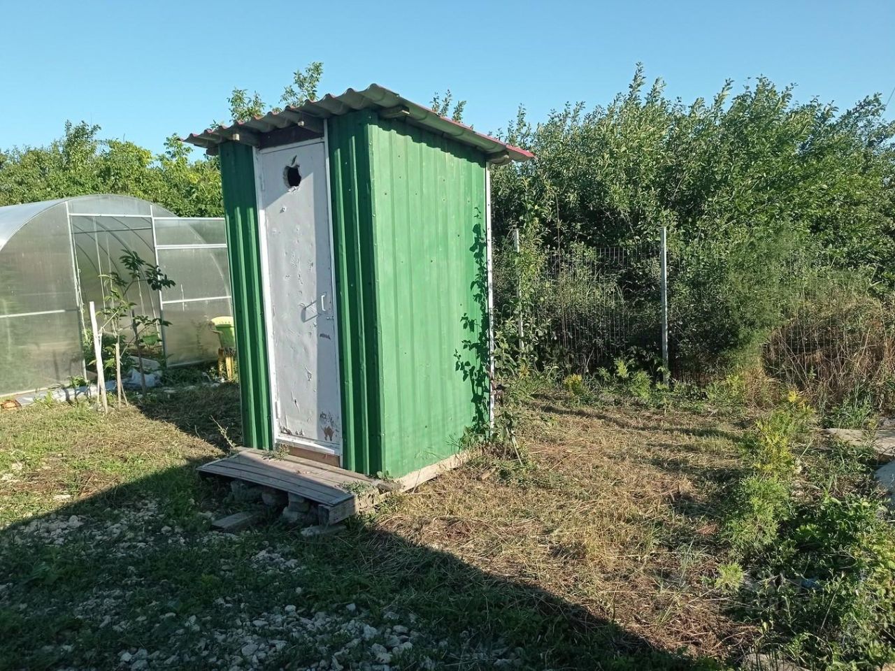 Установлен забор с откатными воротами, основательная теплица и дачный туалет. Посажен фруктовый сад: 7 деревьев черешни, груша, яблоня, инжир, хурма, вишня, абрикос, гранат, кизил, жёлтая медовая слива, нектарин, персик, смородина, крыжовник, жёлтая и красная малина, грецкий орех и фундук.